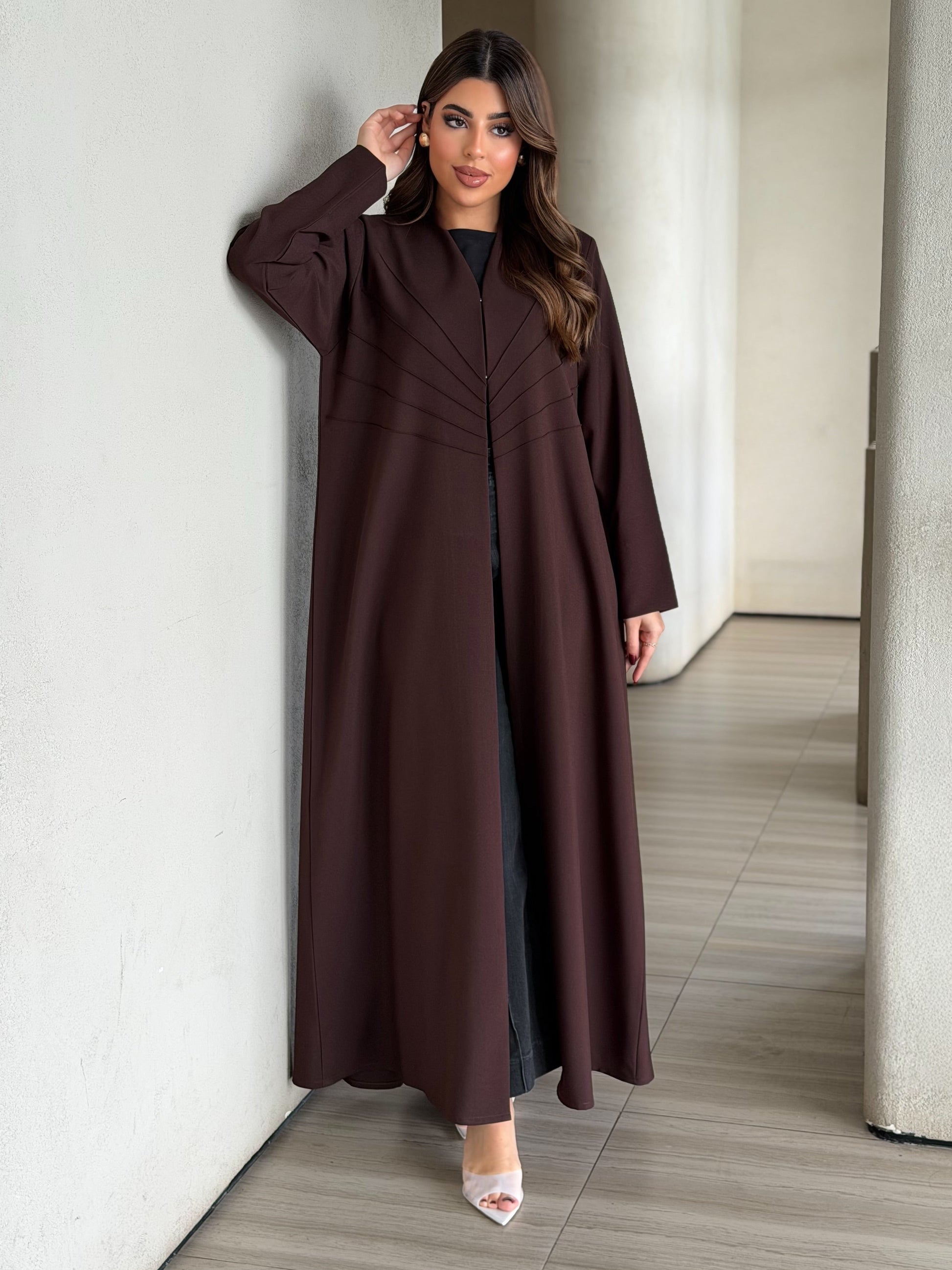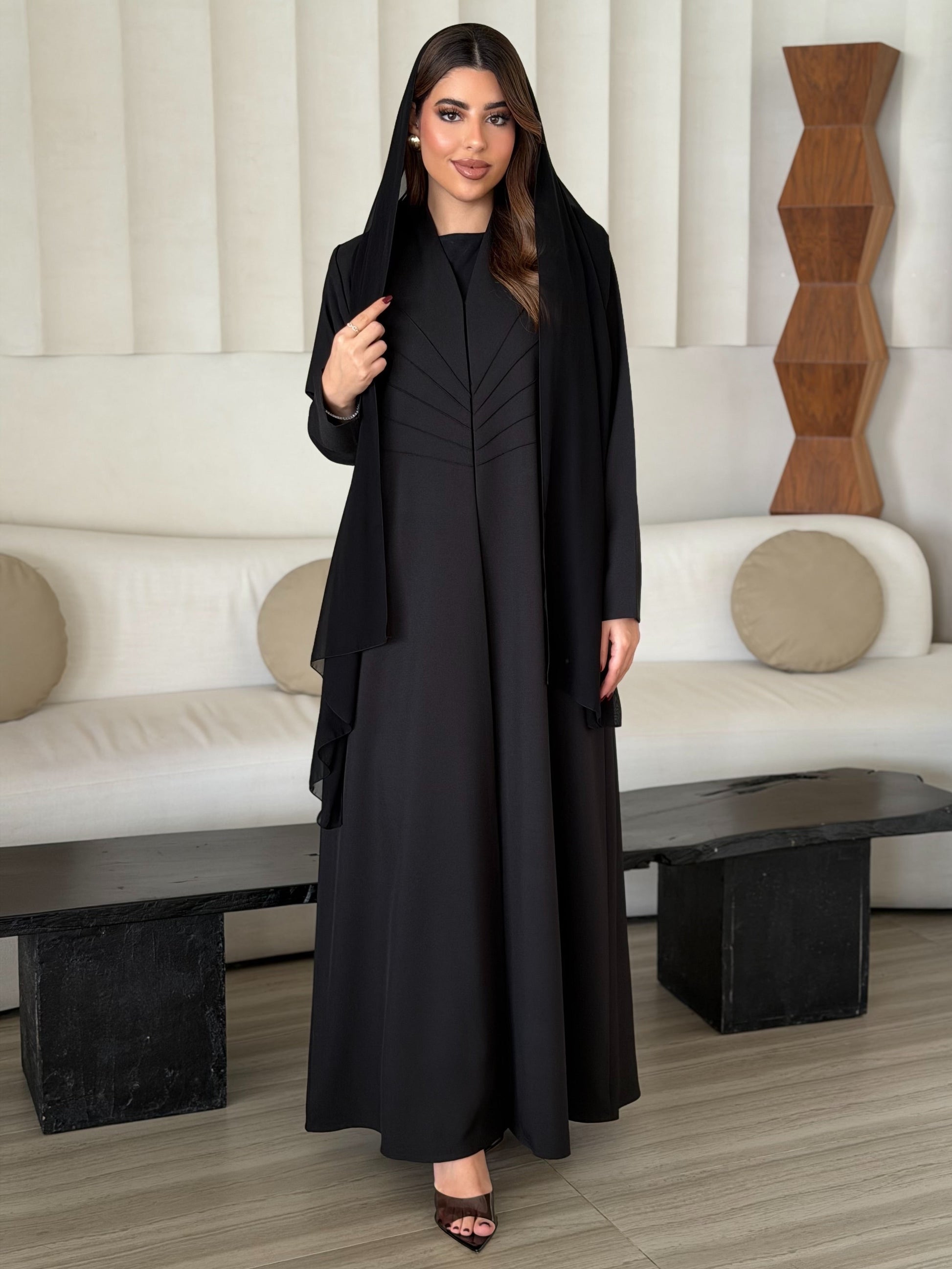 Plain abaya with striped lines stitching across upper abaya for elegant casual wear, comes with matching shaila.